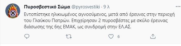 Πάτρα: Λήξη συναγερμού για 78χρονο αγνοούμενο – Εντοπίστηκε από σκύλο της ΕΜΑΚ