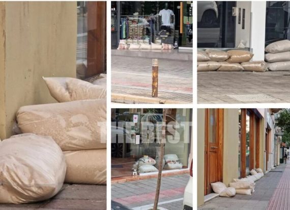 Πρωτοφανείς είναι οι εικόνες που βλέπουν το φως της δημοσιότητας από την Πάτρα, όπου καταστηματάρχες αναζητούν πρωτότυπους τρόπους προκειμένου να προστατέψουν τα μαγαζιά τους από την επερχόμενη καρκοκαιρία τοποθετώντας ακόμη και τσουβάλια με άμμο έξω από αυτά.