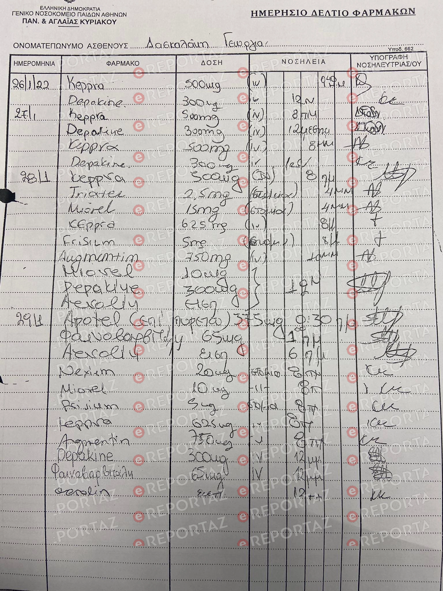 Tο ημερήσιο δελτίο με τα φάρμακα που λάμβανε η Τζωρτζίνα μέχρι και την κατάληξη της