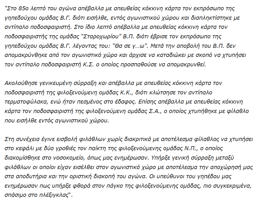 Ο διαιτητής έγραψε στο φύλλο αγώνα: