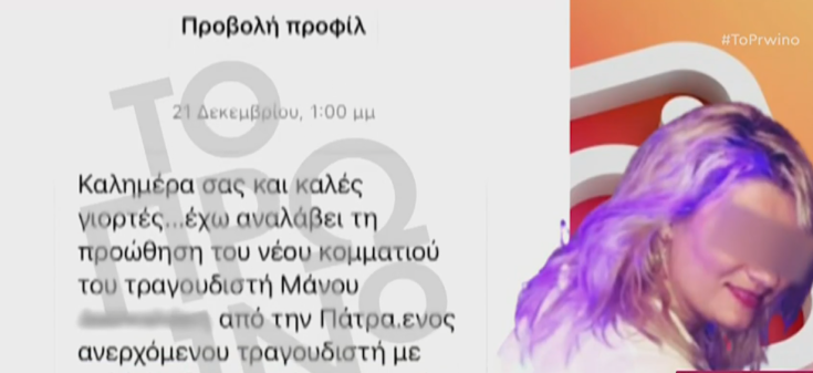“Καλημέρα σας και καλές γιορτές. Έχω αναλάβει την προώθηση του νέου κομματιού του τραγουδιστή Μάνου Δασκαλάκη από την Πάτρα, ενός ανερχόμενου τραγουδιστή με πολλή όρεξη και αγάπη σε αυτό που κάνει. Μία κοινοποίηση στο προφίλ σας σε ιστορία θα μας χαροποιήσει ιδιαίτερα. Σας στέλνω το λινκ. Ευχαριστώ εκ των προτέρων” έγραφε χαρακτηριστικά στο μήνυμα η Ρούλα Πισπιρίγκου.