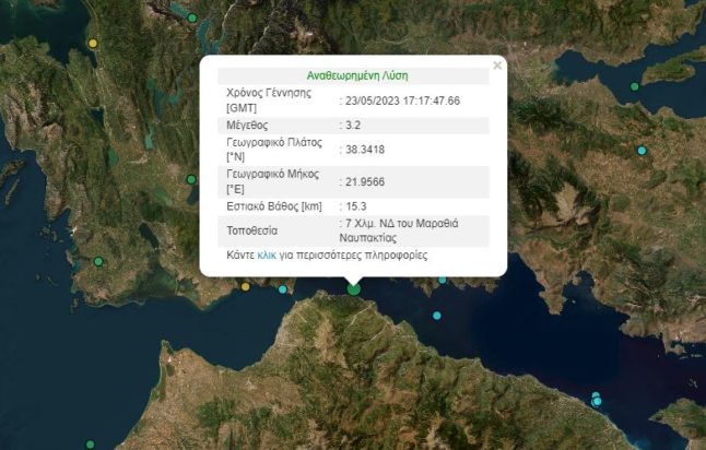 Σύμφωνα με την αναθεωρημένη λύση του Γεωδυναμικού Ινστιτούτου του Εθνικού Αστεροσκοπείου Αθηνών, ο σεισμός είχε μέγεθος 3,2 βαθμών της κλίμακας Ρίχτερ και το επίκεντρο εντοπίστηκε επτά χιλιόμετρα νοτιοδυτικά του Μαραθιά Φωκίδας, ενώ το εστιακό βάθος προσδιορίστηκε περίπου στα 15 χιλιόμετρα.