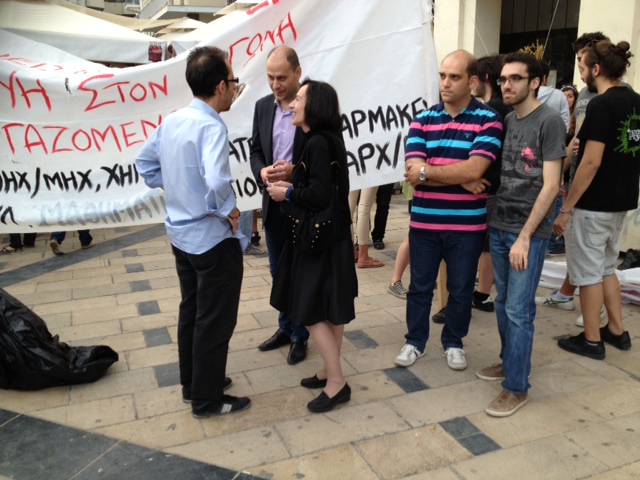 Ήδη εκατοντάδες πολίτες έχουν αρχίσει να συρρέουν στην πλατεία για να εκφράσουν τη συμπαράστασή τους προς τον αγώνα των εργαζομένων της ΕΡΤ, αλλά και την οργή τους για τον τρόπο που η κυβέρνηση αποφάσισε και υλοποίησε την απόφασή της.