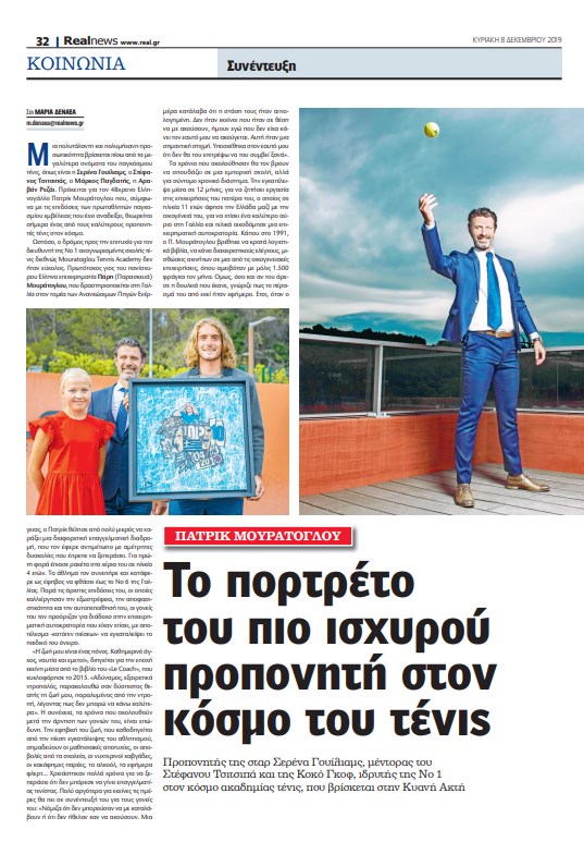 Ο Πατρίκ Μουράτογλου μιλά αποκλειστικά στην «R». Ο μέντορας του Στέφανου Τσιτσιπά αποκαλύπτει το μυστικό της επιτυχίας. Προπονητής της σταρ Σερένα Γουίλιαμς, μέντορας του Στέφανου Τσιτσιπά και της Κοκό Γκοφ, ιδρυτής της Νο 1 Ακαδημίας τένις στον κόσμο που βρίσκεται στην Κυανή Ακτή.