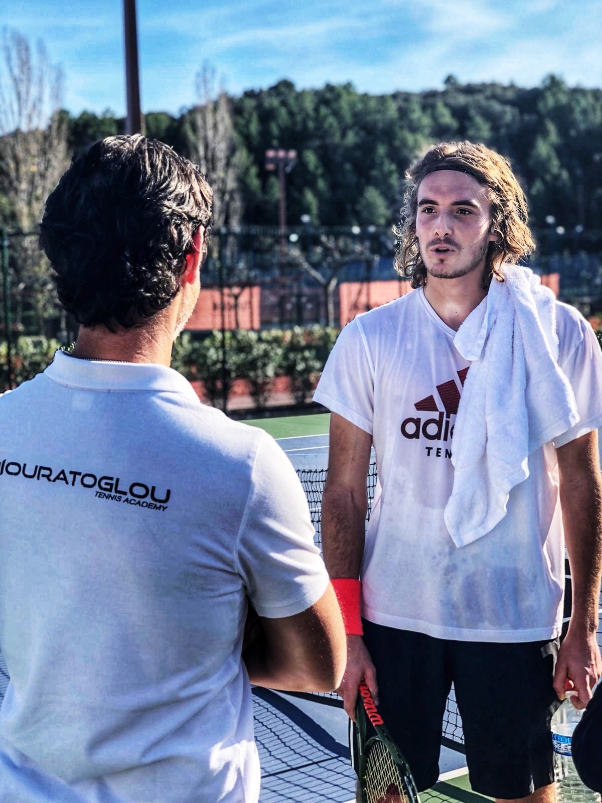Ανακάλυψα τον Στέφανο το 2015 στο διαδίκτυο. Είχα ακούσει να μιλάνε για έναν νεαρό Έλληνα που έπαιζε καλό τένις. Έψαξα στο ίντερνετ και βρήκα το βίντεο ενός αγώνα όπου έπαιζε στο Youtube. Η ποιότητα του βίντεο ήταν μέτρια, αλλά ανακάλυψα έναν νεαρό που μου φάνηκε ότι παρουσίαζε τα υψηλά προσόντα ενός σπουδαίου παίκτη. Στη συνέχεια πλησίασα τον πατέρα του τον Απόστολο και τους έφερα στην Ακαδημία Μουράτογλου. Δουλεύουμε μαζί από τα 16 του και χαίρομαι κάθε μέρα που τον ανακάλυψα και τον βοήθησα να αξιοποιήσει ένα ταλέντο και μια αποφασιστικότητα εκτός ορίων.