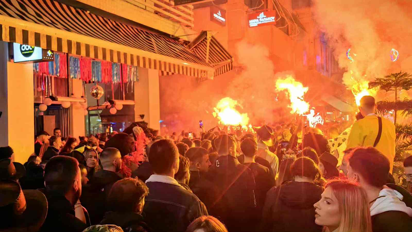 Τα μπαρ και οι πεζόδρομοι της Πάτρας γέμισαν κόσμο και η μουσική κυριάρχησε μέχρι αργά. Οι νεότερες ηλικίες κατέκλυσαν τα στέκια του κέντρου και δημιούργησαν ατμόσφαιρα γιορτής. Τα φώτα έδωσαν ένταση στη βραδιά και τα βεγγαλικά μαζί με τα καπνογόνα ενίσχυσαν το σκηνικό. Πολλά καταστήματα οργάνωσαν θεματικά πάρτι και κράτησαν τον κόσμο μέχρι τα ξημερώματα.