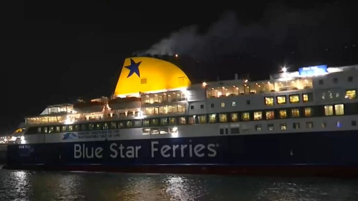 Συγκεκριμένα το πλοίο της Blue Star Ferries έφτασε στις 00:08 στο μεγαλύτερο λιμάνι της χώρας υπό τους ήχους της κόρνας όπως γίνεται κάθε χρόνο, τέτοια μέρα.