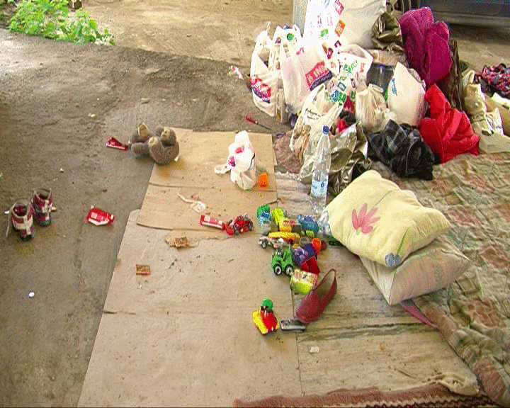 Για κρεβάτι έχουν χαρτόνια κι ένα πάπλωμα ενώ όλα τους τα υπάρχοντα βρίσονται μέσα σε νάιλον τσάντες.