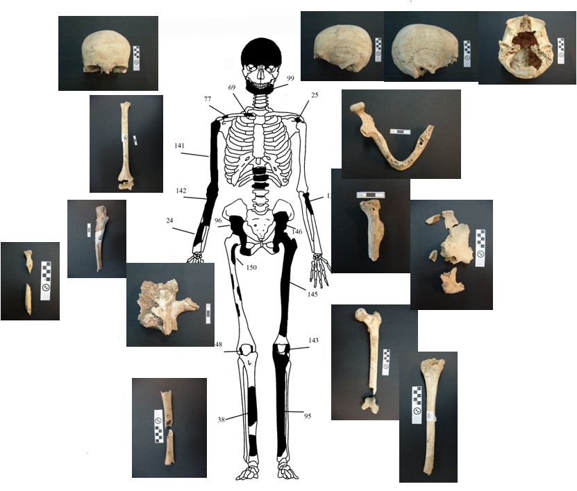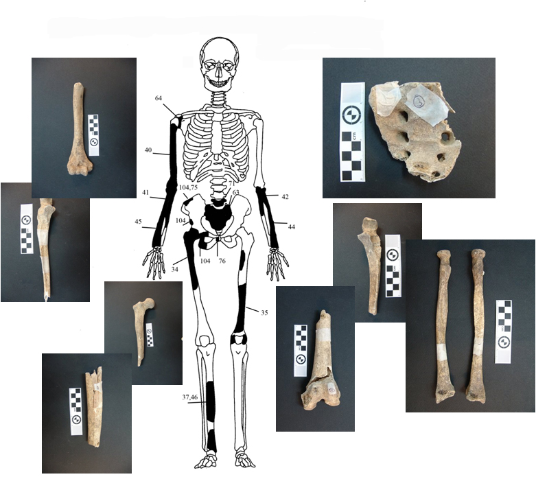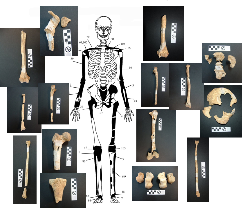 Από τα 550 οστά, που καταμετρήθηκαν, τα 157, τα οποία προέκυψαν, κατόπιν προσεκτικής ανάταξης από διαφορετικά θραύσματα διάσπαρτων οστών, καταγράφηκαν συστηματικά σε βάση δεδομένων και έγινε προσπάθεια απόδοσης τους σε επιμέρους άτομα.
