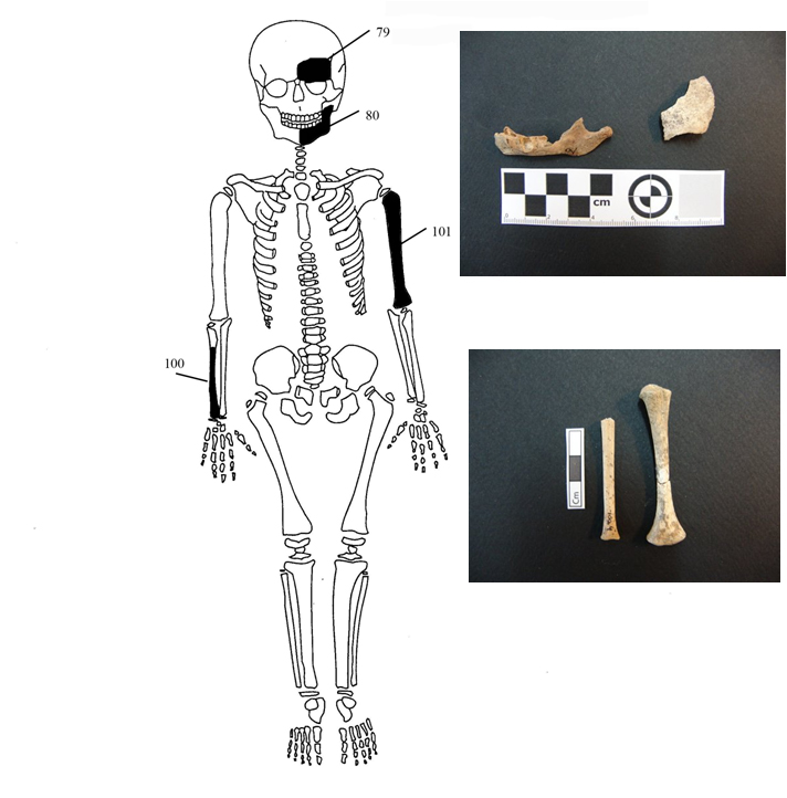 – Ακτινολογική μελέτη των οστών για τον εντοπισμό παθολογικών αλλοιώσεων, που δεν είναι μακροσκοπικά διακριτές αλλά και για την πληρέστερη περιγραφή των ήδη καταγεγραμμένων π.χ. μετωπιαία υπερόστωση ατόμου 1, τομές-τραυματισμοί (cut marks) ατόμου 2, επουλωμένο κάταγμα ατόμου 3.