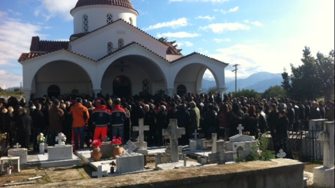 Η τελευταία πράξη του δράματος. Συγγενείς, φίλοι και συνάδελφοι είπαν νωρίτερα το τελευταίο «αντίο» στον Βαγγέλη Κελαράκη, τον άτυχο διασώστη του ΕΚΑΒ ο οποίος χθες μαζί με τον συνάδελφό του Δημήτρη Βουρβαχάκη βρήκαν φρικτό θάνατο σε τροχαίο στον Οδικό Άξονα Κρήτης.