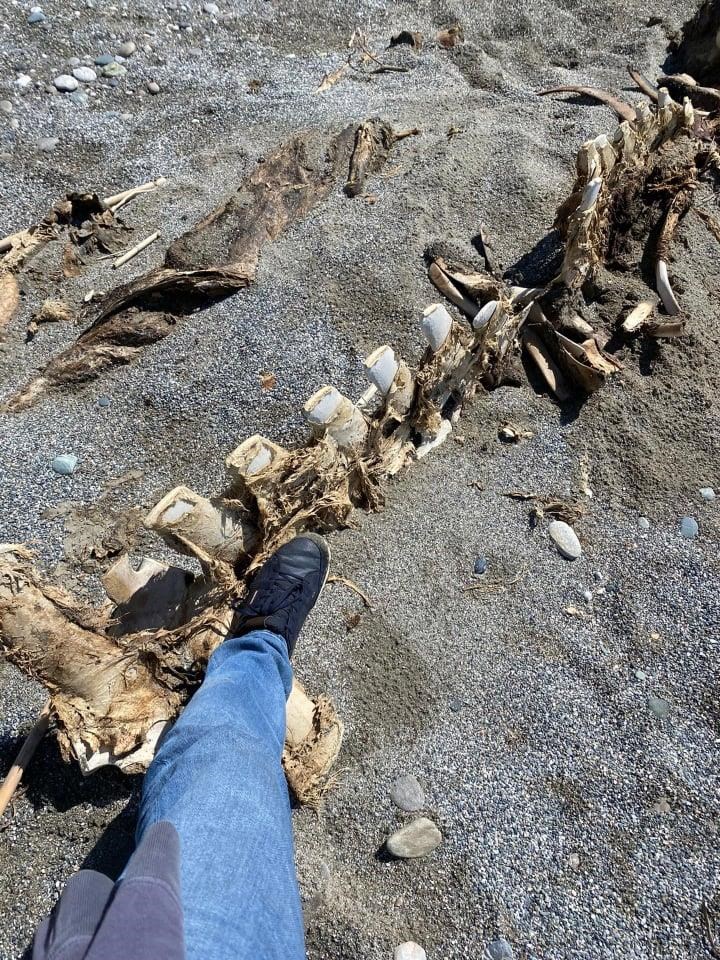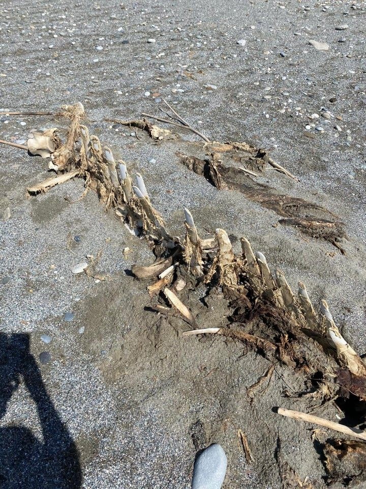 Έναν πολύ περίεργο σκελετό περίπου τριών μέτρων ξέβρασε η θάλασσα στην παραλία της Τριόπετρας στην Κρήτη. Τον σκελετό εντόπισε ένας Βέλγος κατά τη διάρκεια της απογευματινής του βόλτας στην παραλία.