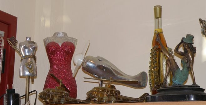 Η συλλογή αριθμεί εκατοντάδες αντικείμενα, μεταξύ των οποίων μπουκάλια από την Αρμενία σε σχήμα σπαθιού και περιεχόμενο κονιάκ… 20 αστέρων(!), σε σχήμα παπουτσιού, γυναικείου κορμιού, αναπτήρες– γόβες και αναπτήρες-τσαρούχια και γυμνές γυναίκες, διακοσμητικά ρολόγια τοίχου σε σχήμα ήλιου, ωρολόγια που …συγκρατούν τον χρόνο ανάμεσα στους καλλίγραμμους μηρούς γυναικών, ογκώδη αγάλματα απ΄ τις Φιλιππίνες, φτερά, πούπουλα, παγώνια -πουλιά γενικώς- κουκλάκια διακοσμητικά με τις μορφές παπάδων, που παίζουν τάβλι, αγορασμένα από την Τήνο.