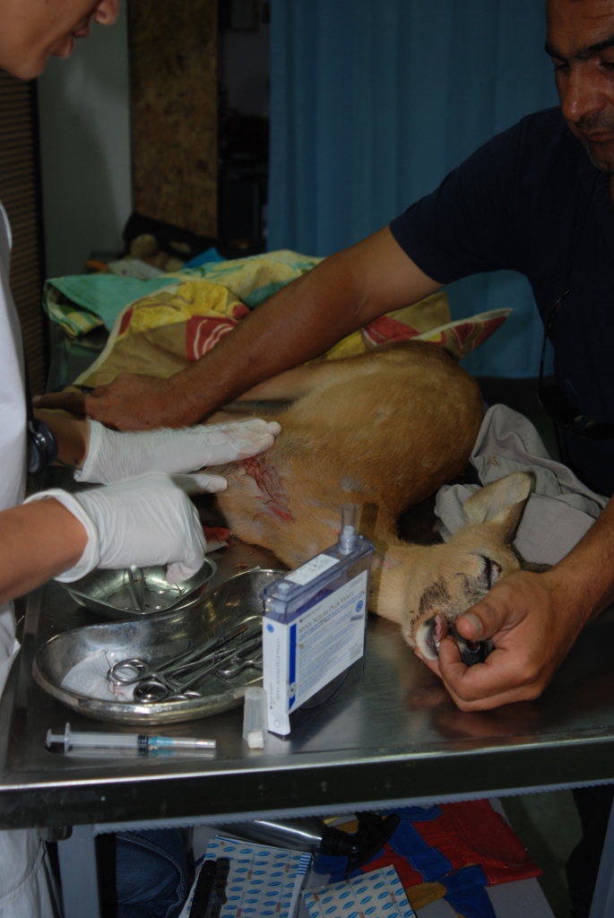 Με τη συνδρομή των οδηγών ποταμού της Riverland (Γραφείο οικοτουρισμού), που υλοποιούσε δράση στην περιοχή, μεταφέρθηκε το τραυματισμένο ζαρκάδι έξω από την περιοχή των Στενών του Νέστου και αφού παραλήφτηκε από την ομάδα επόπτευσης μεταφέρθηκε σε κτηνιατρείο της Ξάνθης, όπου μετά από γενική αναισθησία, του έγινε περιποίηση και ράψιμο των τραυμάτων που είχε από άγνωστη αιτία στη δεξιά του πλευρά.