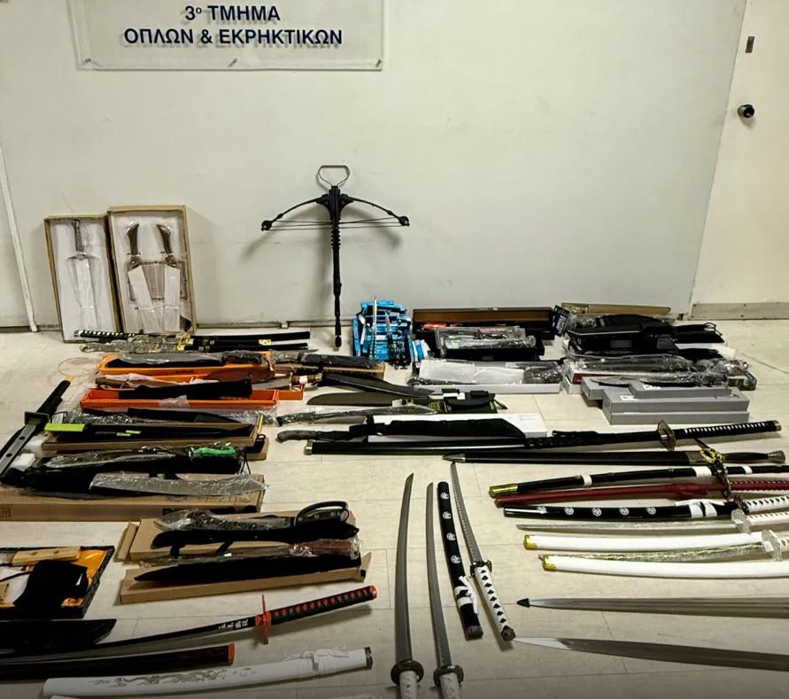 Συγκεκριμένα, έπειτα από διερεύνηση πληροφοριών αναφορικά με κατάστημα που πουλούσε παράνομα μέσω διαδικτύου (e-shop) διαφόρων τύπων μαχαίρια και ξίφη, συγκροτήθηκε ειδική ομάδα αστυνομικών, η οποία εξακρίβωσε το χώρο του φυσικού καταστήματος και πιστοποίησε την εγκληματική του δραστηριότητα.