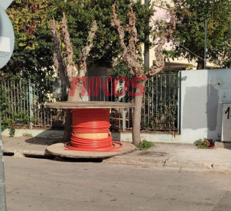 Εδώ και μία εβδομάδα ένα μεγάλο καρούλι παραμένει έξω από σχολείο στο Περιστέρι, «κλείνοντας» όλο το πεζοδρόμιο.