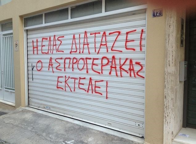 «Παρέμβαση» έξω από το σπίτι του Εισαγγελέα Εφετών, Δημήτρη Ασπρογέρακα πραγματοποίησε την Παρασκευή ομάδα αντιεξουσιαστών.