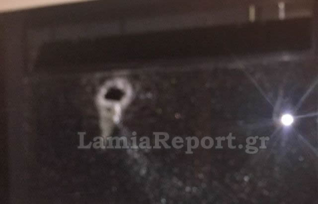 Στις φωτογραφίες βλέπετε το σπασμένο τζάμι του αστικού λεωφορείου.
