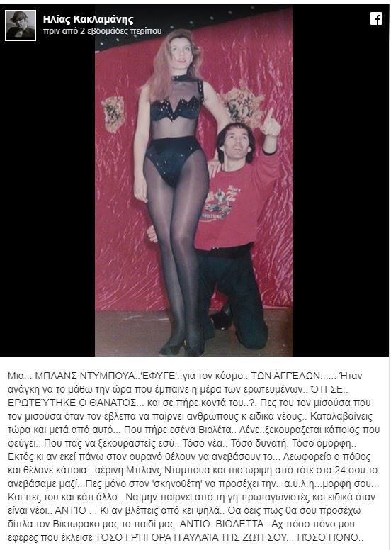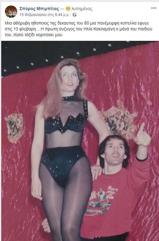 Η ηθοποιός πέθανε στις 13 Φεβρουαρίου όπως έγραψε σε ανάρτησή του στο facebook ο Σπύρος Μπιμπίλας ενώ συγκίνηση έφερε και η ανάρτηση του πρώην συζύγου της με τον οποίο έχουν έναν γιο και παρουσιαστή Νικήτα Κακλαμάνη.