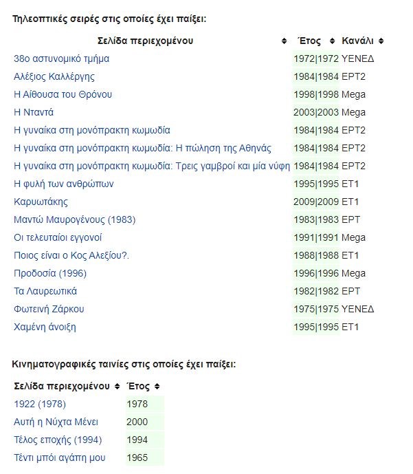 Είχε κάποιες συμμετοχές σε τηλεοπτικές σειρές και κινηματογραφικές ταινίες σύμφωνα με το retrodb.gr