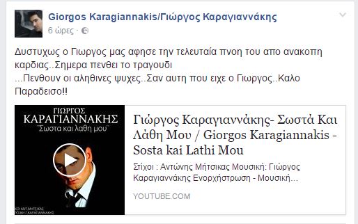 Την τελευταία του πνοή άφησε σε ηλικία 38 ετών ο Γιώργος Καραγιαννάκης. Ο τραγουδιστής, που εμφανιζόταν σε γνωστό στέκι στη Γλυφάδα, πέθανε από ανακοπή καρδιάς.
