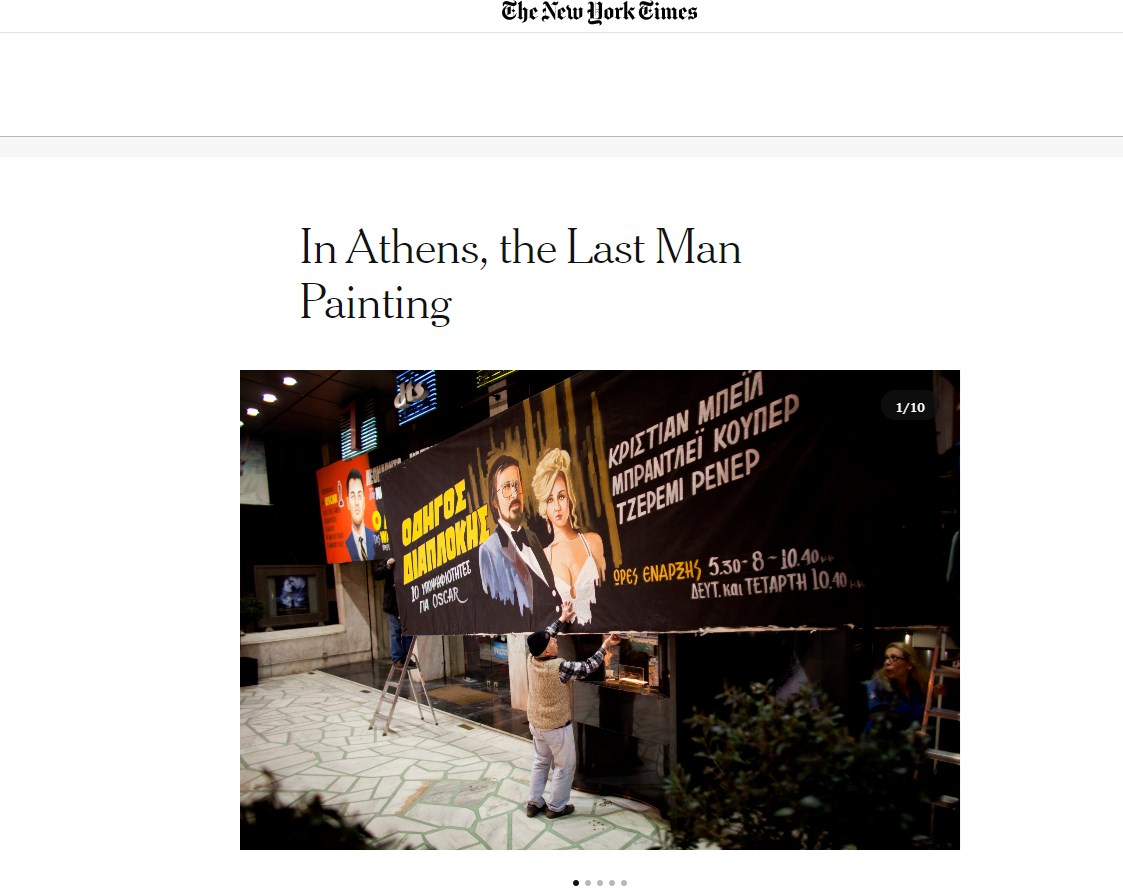 “Σήμερα, είναι ο τελευταίος ζωντανός ζωγράφος billboard στην Ελλάδα, και ένας από τους λίγους στην Ευρώπη, η τέχνη του είναι στα πρόθυρα της εξαφάνισης. Όταν οι βουβές ταινίες ξεκίνησαν τη δεκαετία του 1920, τα στούντιο του Χόλιγουντ χρησιμοποίησαν γραφίστες για να μεταδώσουν την αίγλη και τον ενθουσιασμό των νέων κυκλοφοριών και χειροποίητες πινακίδες έρχονταν για να κοσμούν θέατρα σε όλο τον κόσμο. Η άνοδος του αυτοκινήτου βοήθησε στην τόνωση μιας ακμάζουσας βιομηχανίας βαμμένων πινακίδων αυτοκινητόδρομων σε όλη την Αμερική, την Ευρώπη, την Αφρική και την Ασία. Αλλά σε μια εποχή μαζικής παραγωγής εκτυπώσεων, η πρακτική ήταν εκτός λειτουργίας. Μόνο ένας μικρός αριθμός ανθρώπων όπως ο κ. Δημητρίου διατηρεί την παράδοση” αναφέρουν οι NY Times.