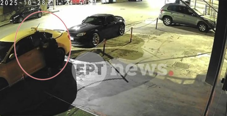Στο υλικό από κάμερες ασφαλείας, που μετέδωσε η ΕΡΤ, διακρίνεται ο άνδρας, ο οποίος φοράει κουκούλα και σκουρόχρωμα ρούχα, να στέκεται στο πίσω μέρος ενός σταθμευμένου ταξί και να παρατηρεί γύρω του, εάν τον βλέπει κάποιος. Σύμφωνα με πληροφορίες, ο δράστης έφτασε στο σημείο με δίκυκλο.