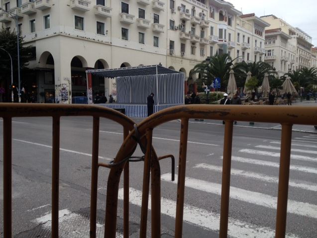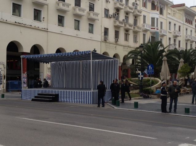 Η εξέδρα έχει στηθεί στην πλατεία Αριστοτέλους, ενώ κάγκελα έχουν τοποθετηθεί κατά μήκος της οδού, από την Αγίας Σοφίας και μέχρι την οδό Κομνηνών.
