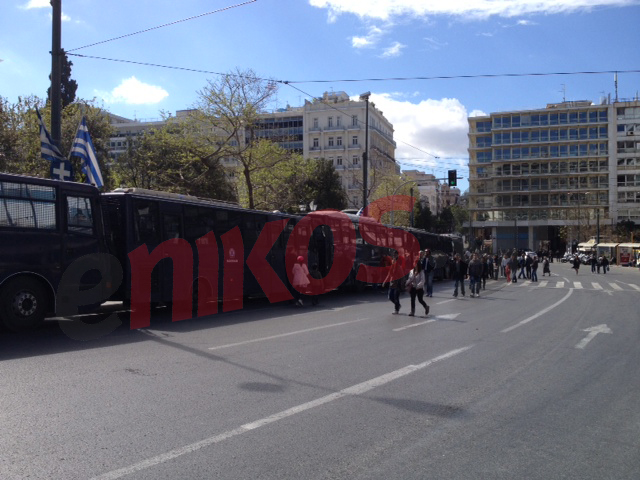 Η αστυνομία δεν αφήνει τον κόσμο να περάσει προς την πλατεία Συντάγματος.