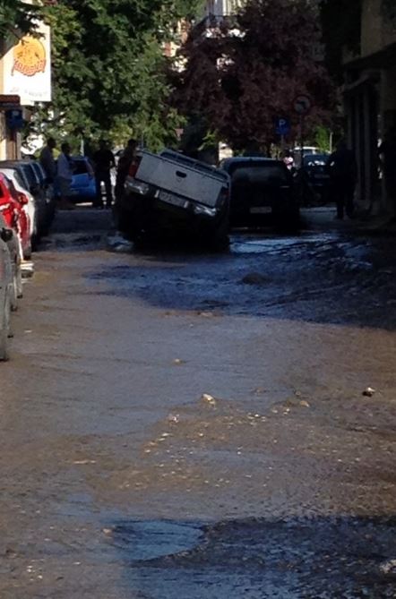 Τα νερά ξεχύθηκαν στους δρόμους της πόλης κατακλύζοντας την κεντρική οδική αρτηρία, της οδού Κονδύλη. Στο σημείο έσπευσαν συνεργεία της ΔΕΥΑΤ και μάλιστα ένα από τα αυτοκίνητα της επιχείρησης το… «κατάπιε» ο αγωγός.