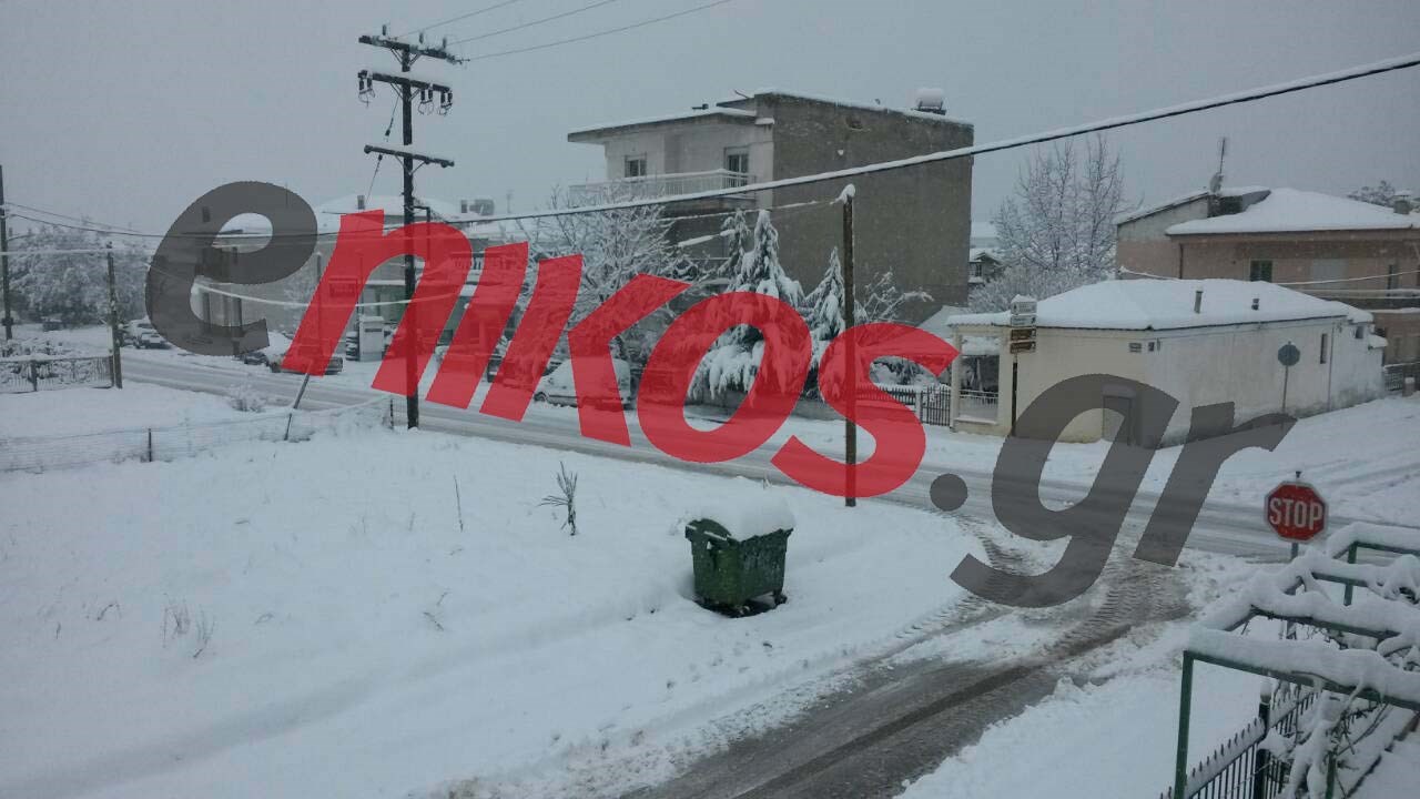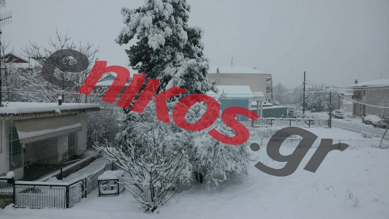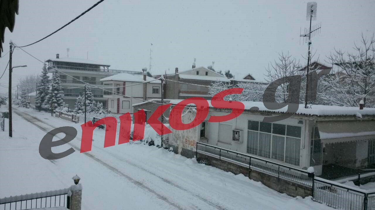 Όπως φαίνεται στις φωτογραφίες που έστειλε αναγνώστης του enikos.gr, το χιονισμένο τοπίο μοιάζει να έχει βγει από καρτ ποστάλ.