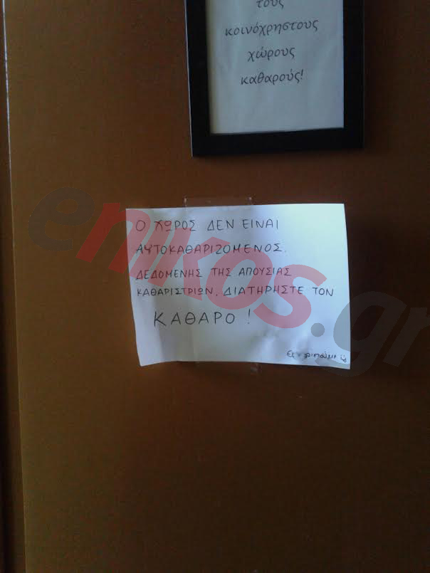 «Υπάρχουν σκουπίδια παντού και οι συνθήκες είναι πλέον εντελώς τριτοκοσμικές σε ένα χώρο που υποτίθεται ότι διεξάγεται ακαδημαϊκό έργο. Σε αυτό το χάλι, έχω να προσθέσω και την δυσωδία που έχει γίνει πραγματικά ανυπόφορη σε διαδρόμους, αμφιθέατρα και τουαλέτες. Και βέβαια αυτό είναι αποτέλεσμα της απόλυσης των καθαριστριών».