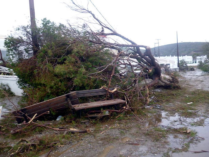 Συγκεκριμένα ξεριζώθηκαν δέντρα και πλημμύρισαν σπίτια. Το Σωματείο Εθελοντών Πολιτικής Προστασίας του νησιού δέχτηκε δεκάδες κλήσεις για απάντληση υδάτων από κατοικίες και καταστήματα, αλλά και για απεγκλωβισμό πολιτών από επικίνδυνα σημεία.