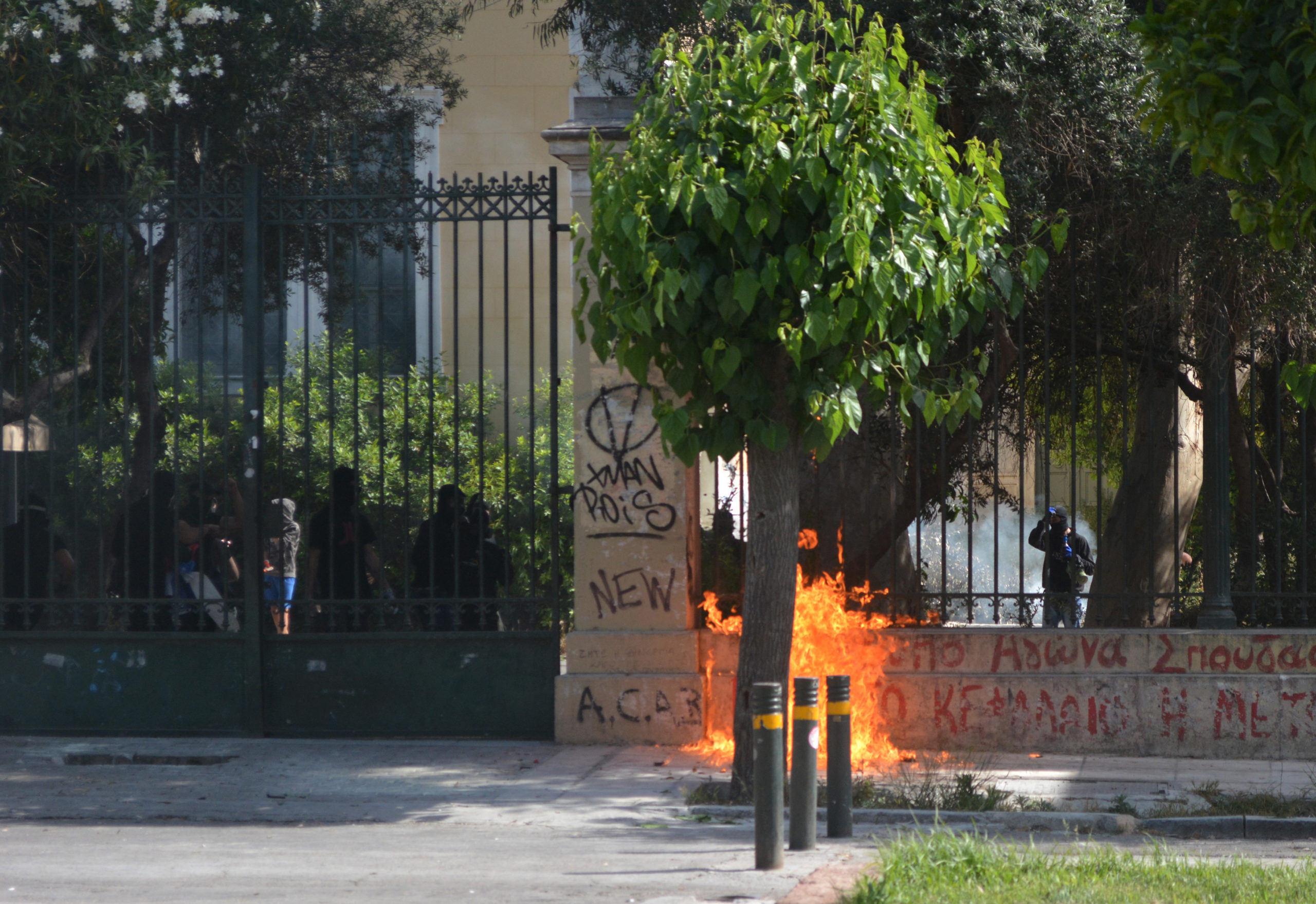 Ταμπουρώθηκαν στο Πολυτεχνείο οι αντιεξουσιαστές που έκαψαν το τρόλεϊ – ΒΙΝΤΕΟ
