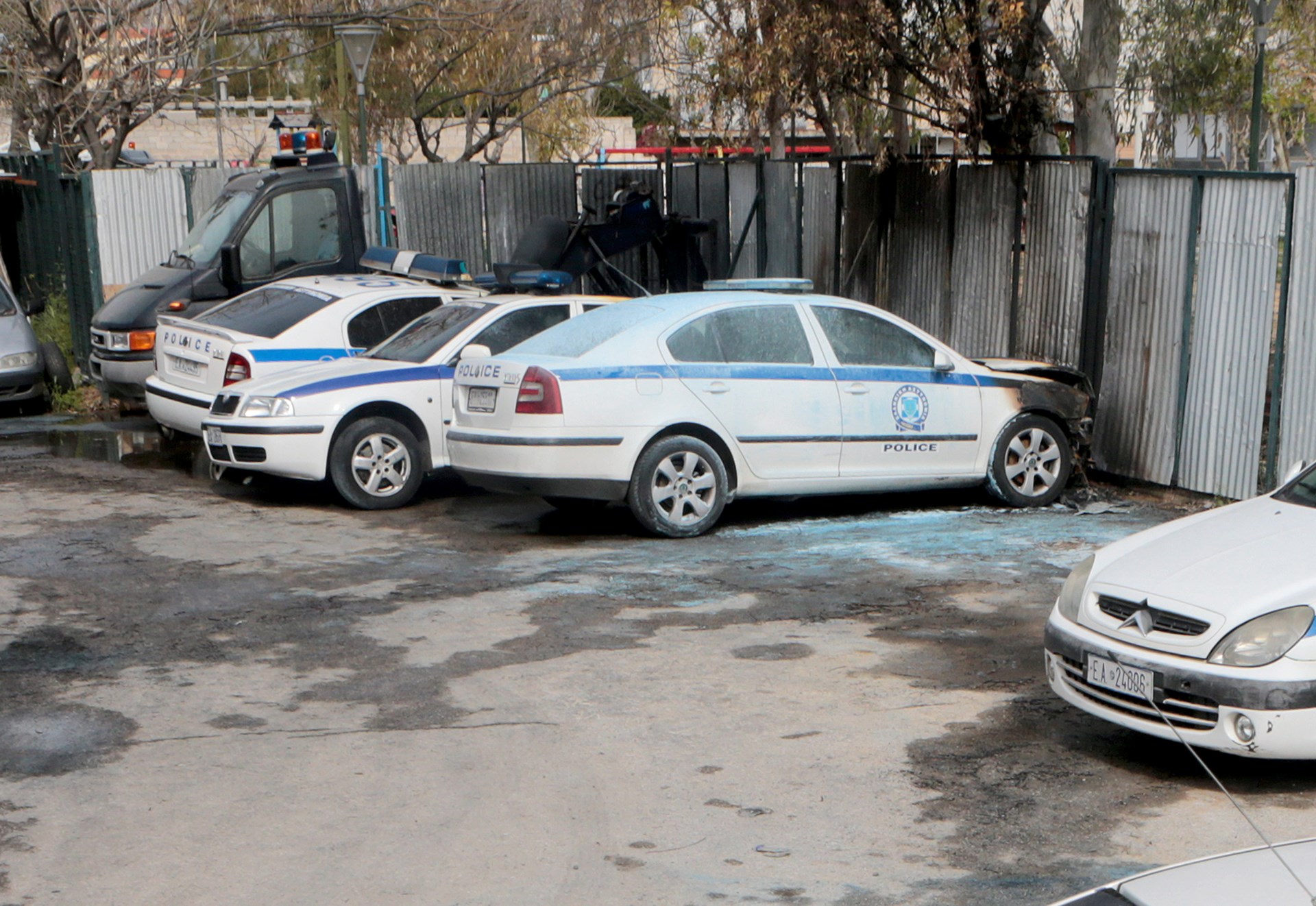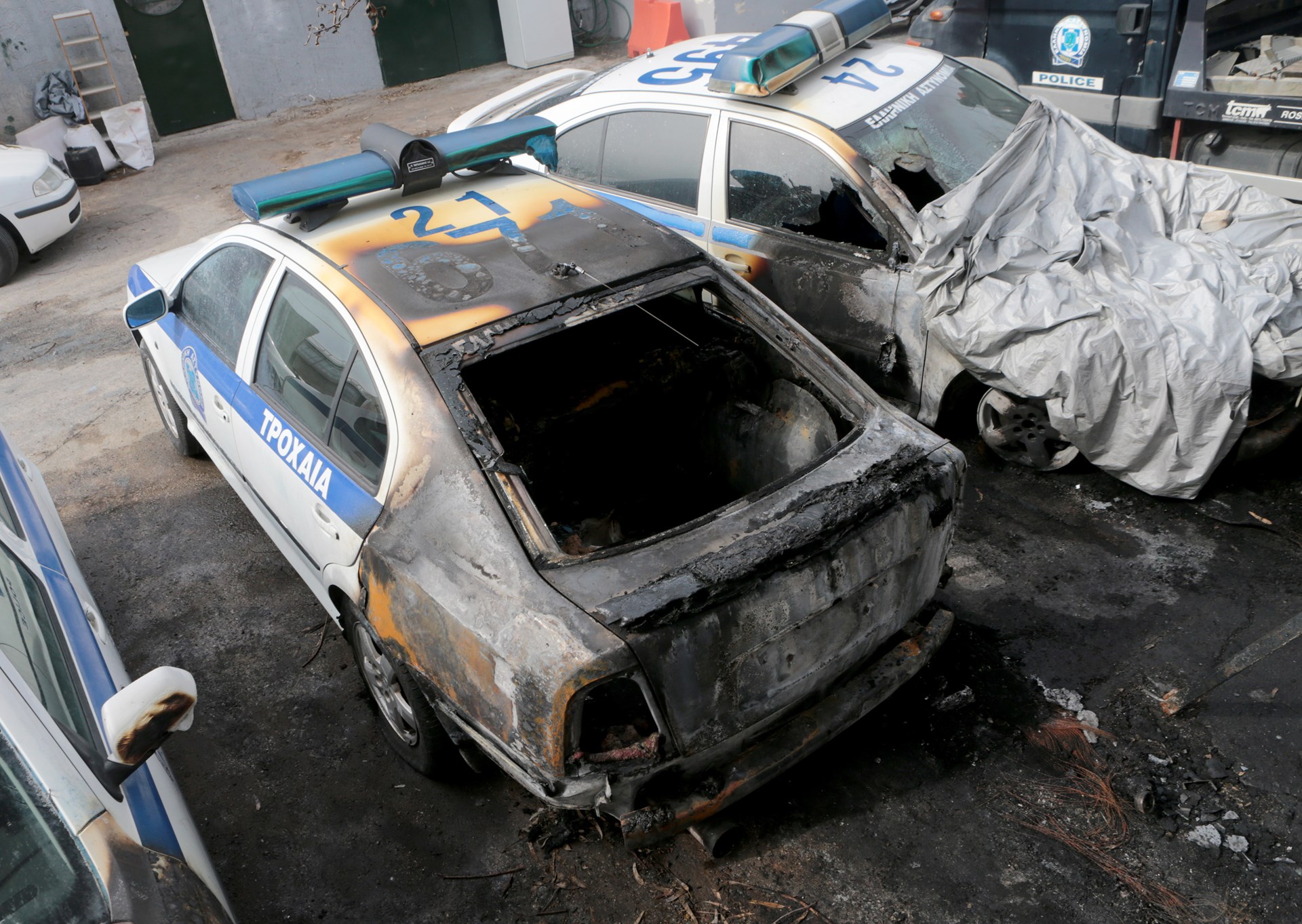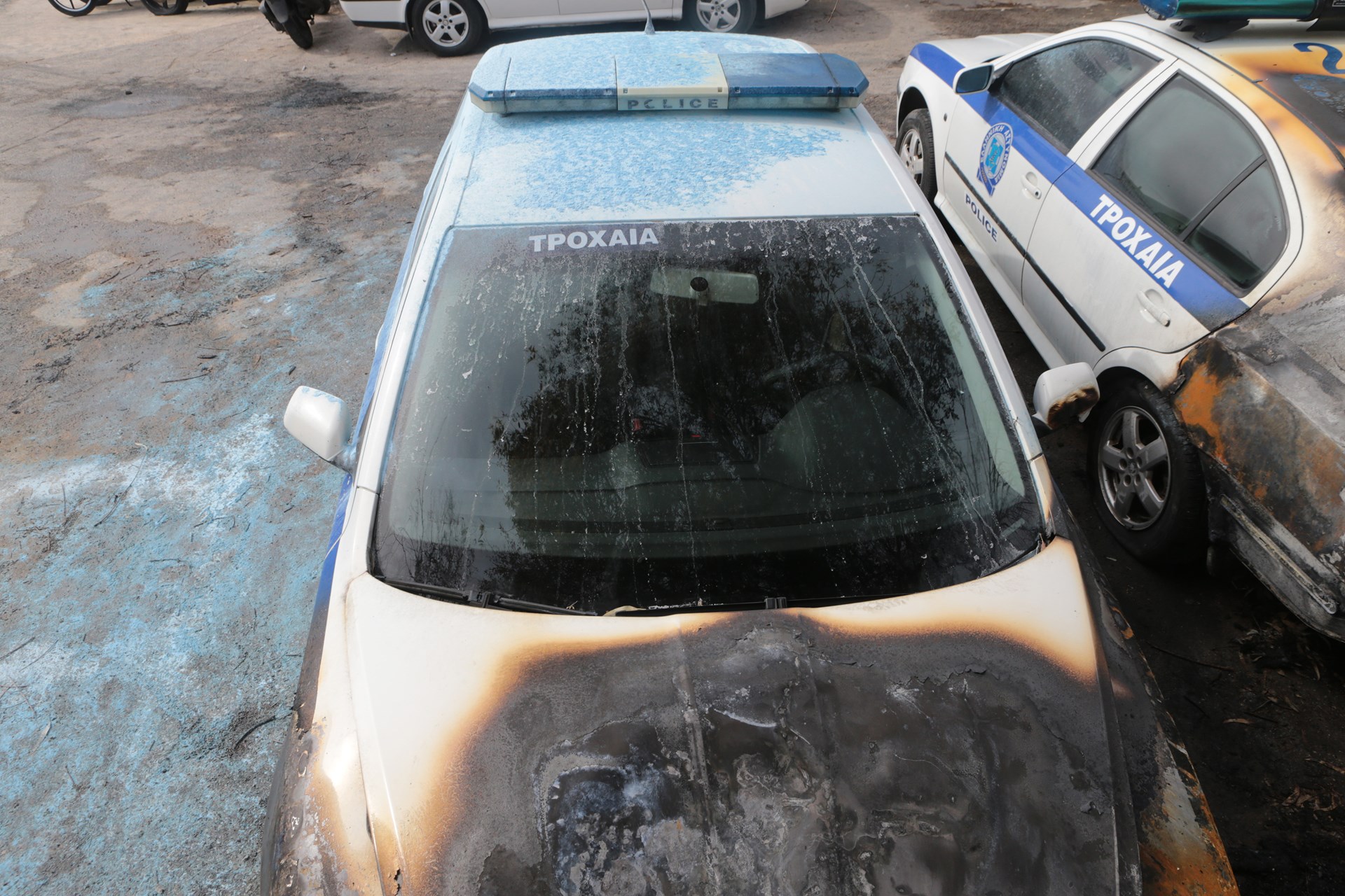 Σύμφωνα με την αστυνομία, οι δράστες τοποθέτησαν αυτοσχέδιο εμπρηστικό μηχανισμό με γκαζάκια σε τρία περιπολικά σε χώρο στάθμευσης που βρίσκεται πίσω από το οίκημα όπου στεγάζεται το Τμήμα της Τροχαίας.