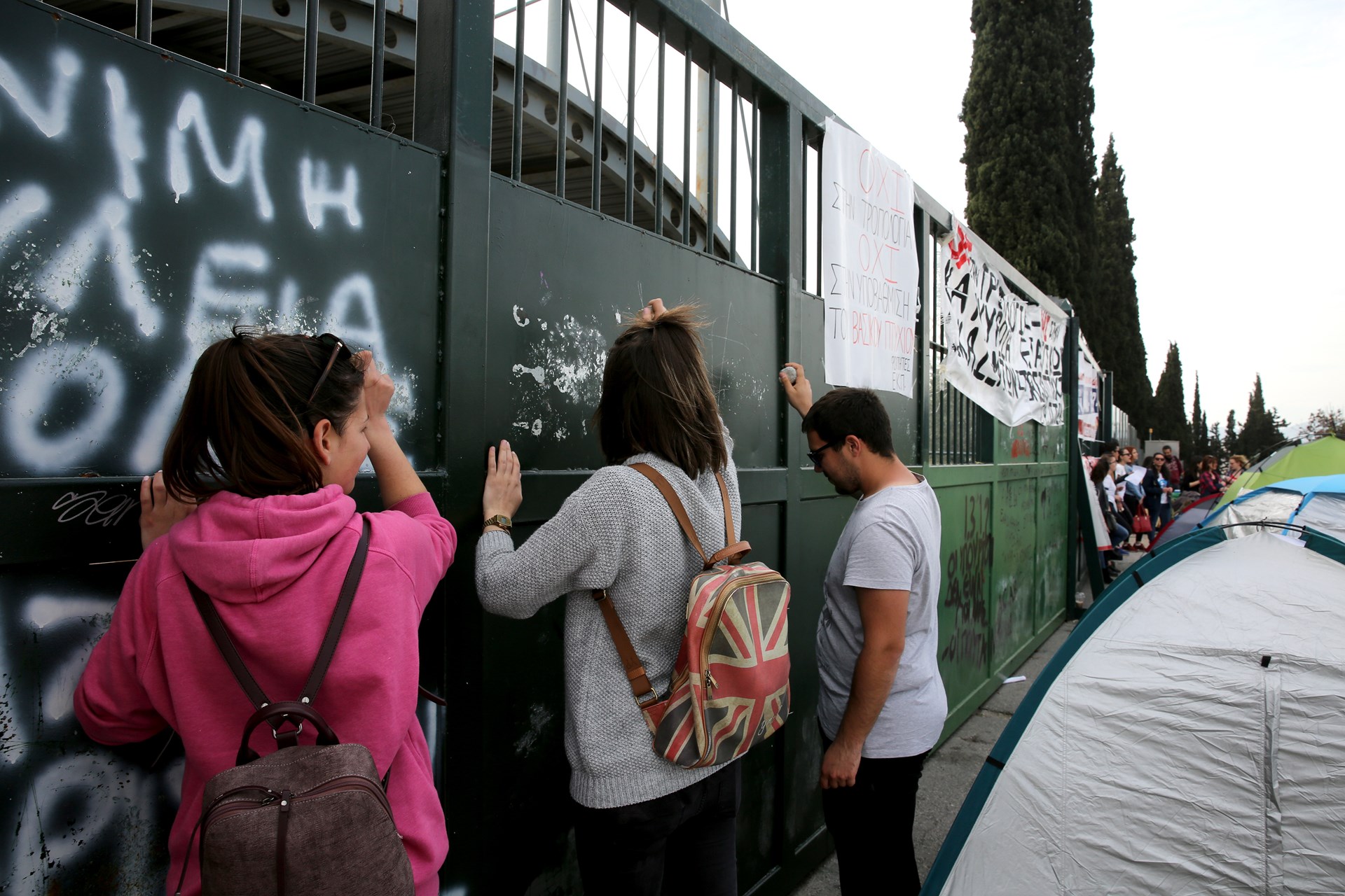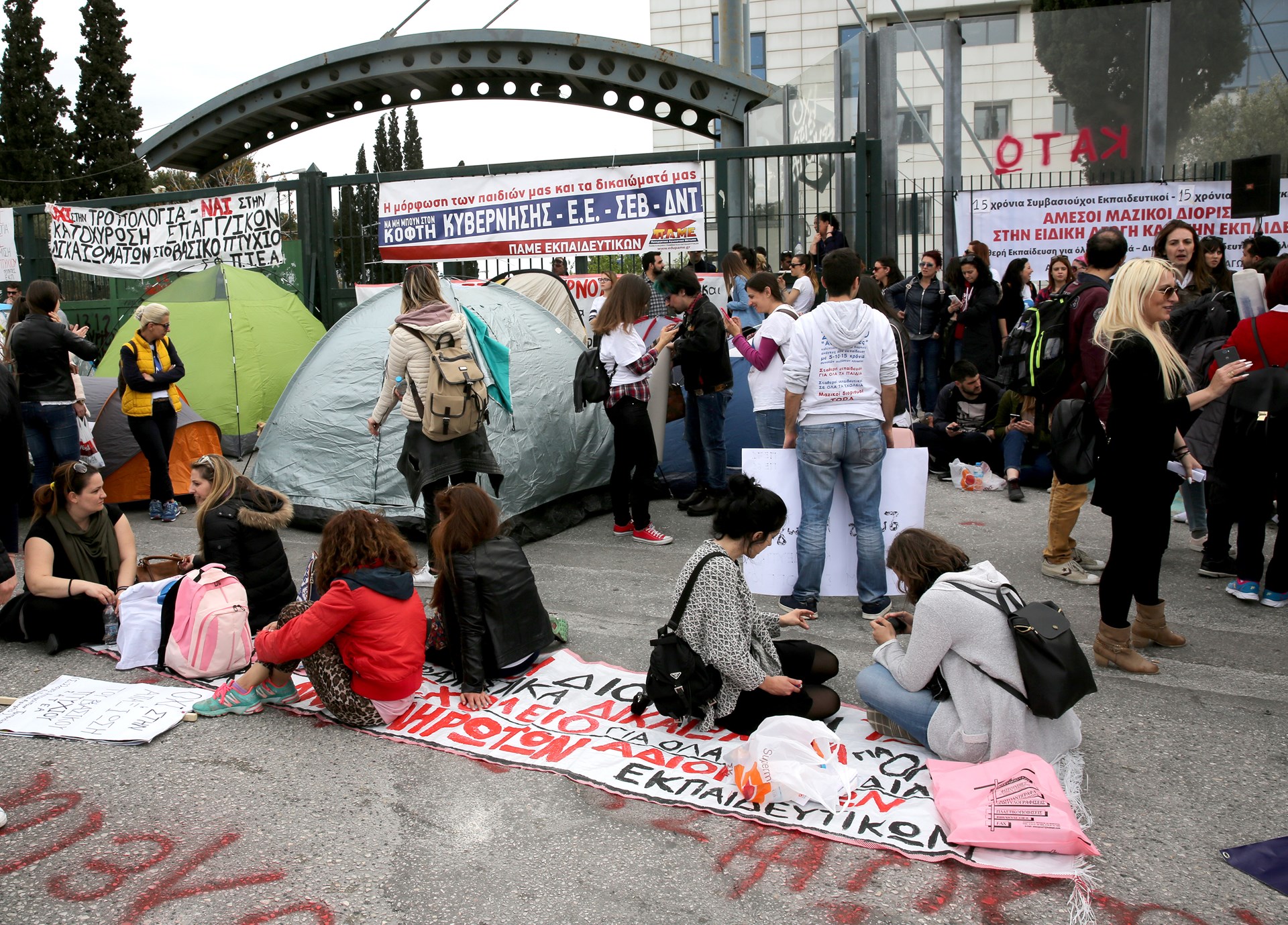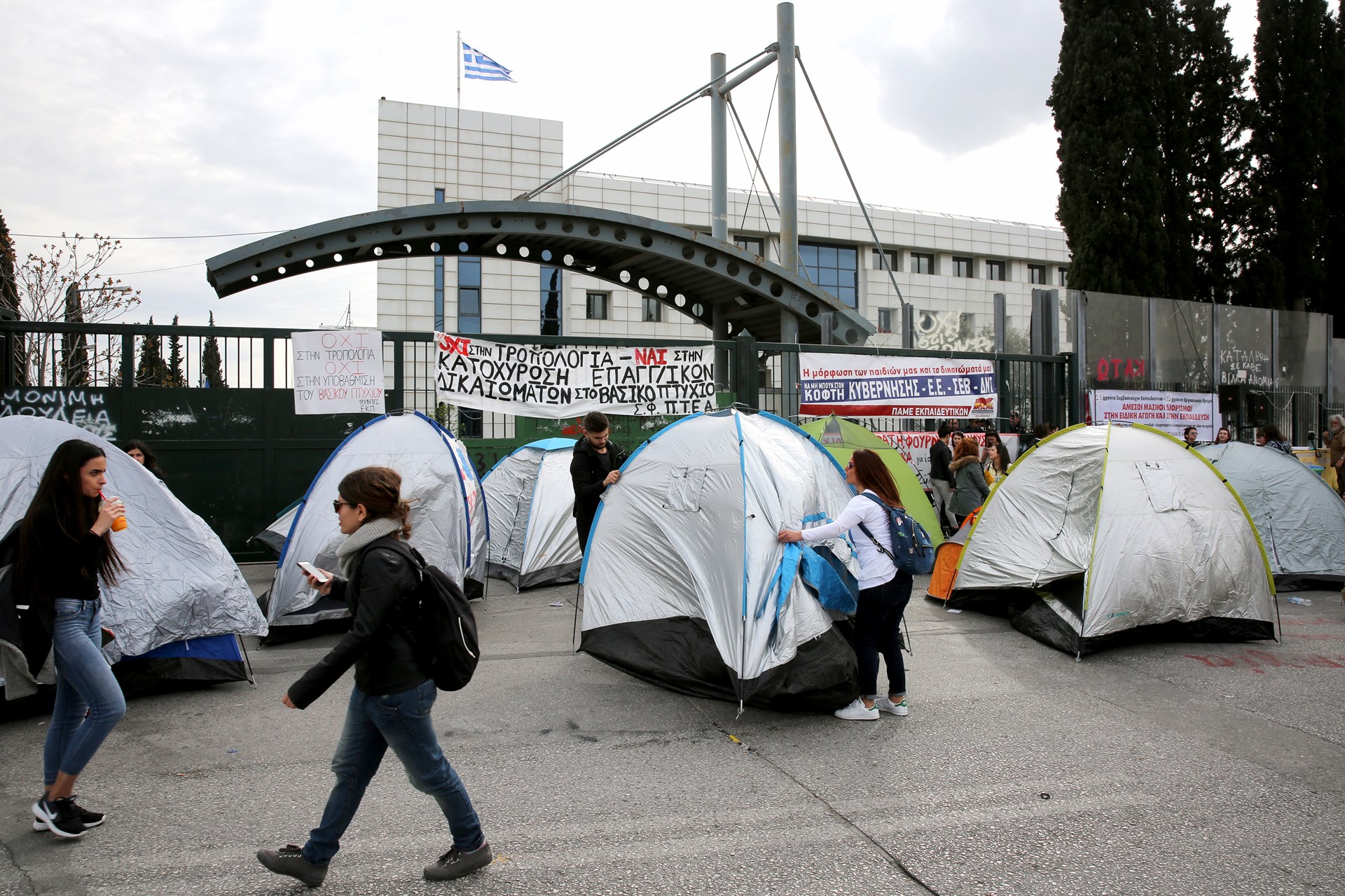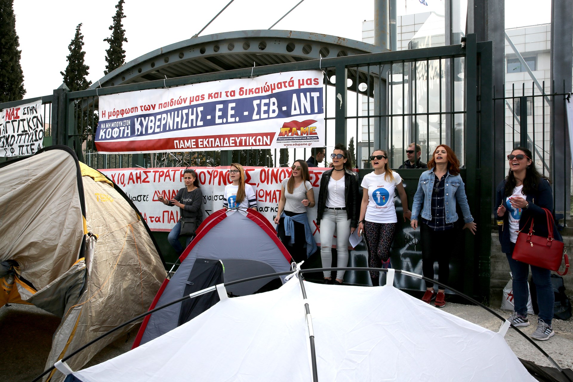 Αδιόριστοι εκπαιδευτικοί έχουν τοποθετήσει σκηνές έξω από το Υπουργείο Παιδείας κατά τη διάρκεια συγκέντρωσης διαμαρτυρίας που πραγματοποιούν αυτή την ώρα.Συλλαλητήριο στο Υπουργείο Παιδείας διοργάνωσε το Συντονιστικό Αναπληρωτών-Αδιόριστων Εκπαιδευτικών, ενάντια στην τροπολογία και την υπουργική απόφαση για την ειδική αγωγή και τους αναπληρωτές.
