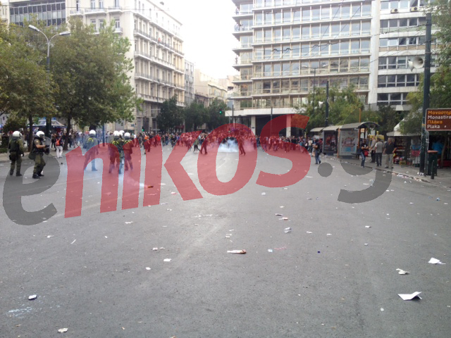 Δείτε φωτογραφίες από την «έφοδο» των ανδρών των ΜΑΤ στην οδό Φιλελλήνων για να διαλύσουν συγκεντρωμένους διαδηλωτές.