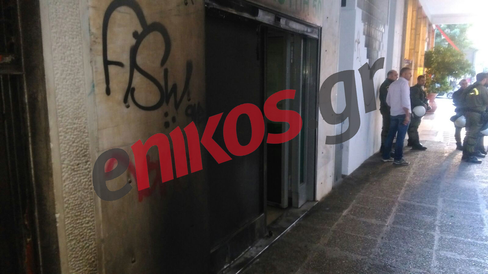 Όπως θα δείτε και στις φωτογραφίες από το σημείο, η πόρτα της εισόδου έχει υποστεί καταστροφές.