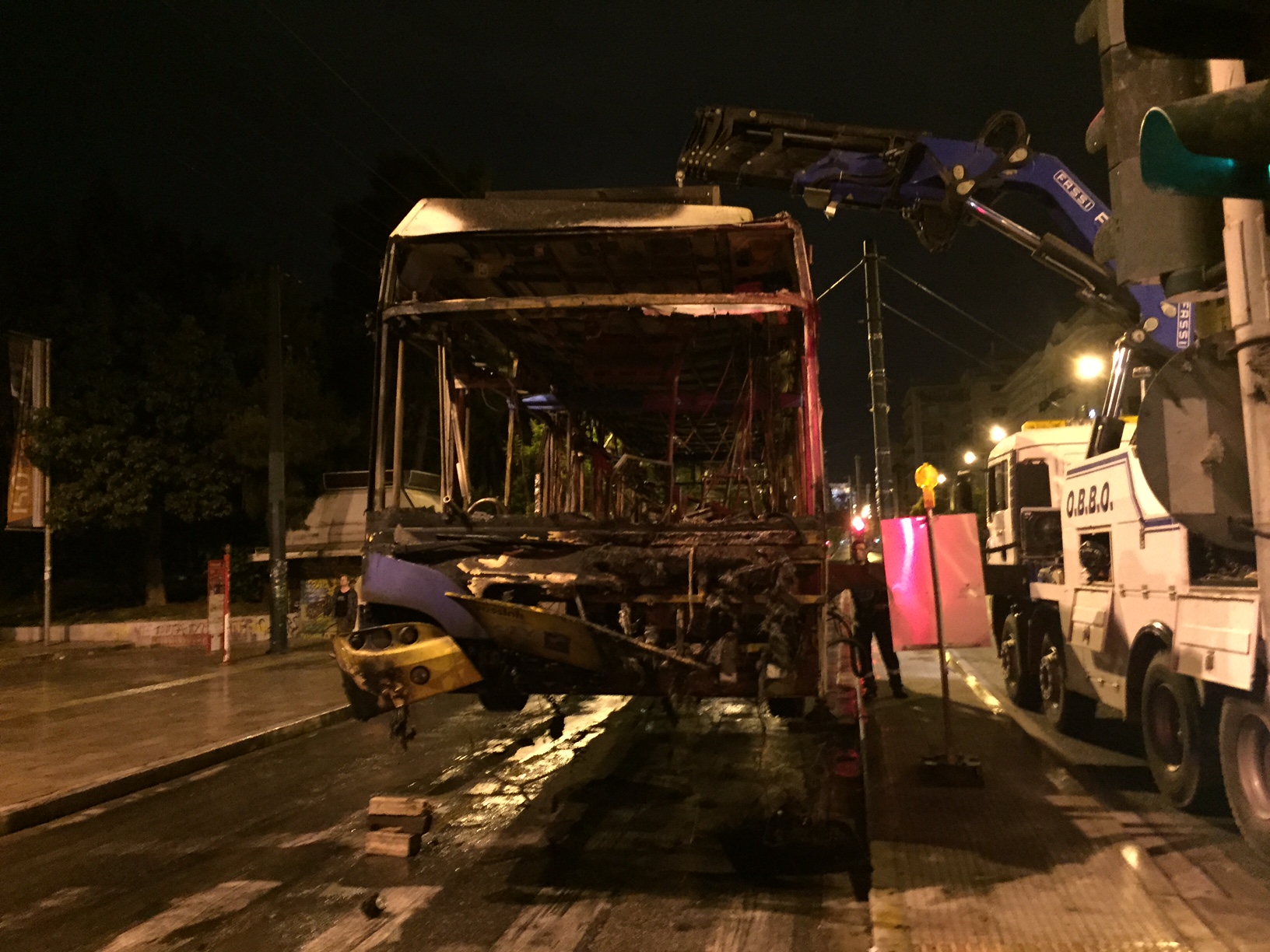 Οι ίδιες πηγές αναφέρουν πως οι δράστες ζήτησαν από τον οδηγό και τους επιβάτες να αποβιβαστούν και αφού έγινε αυτό, στη συνέχεια πέταξαν τις μολότοφ. Αυτή την ώρα στο σημείο βρίσκονται οχήματα της Πυροσβεστικής, που προχωρούν στην κατάσβεση της φωτιάς, ενώ η Τροχαία έχει διακόψει την κυκλοφορία των οχημάτων μπροστά από το Πολυτεχνείο.