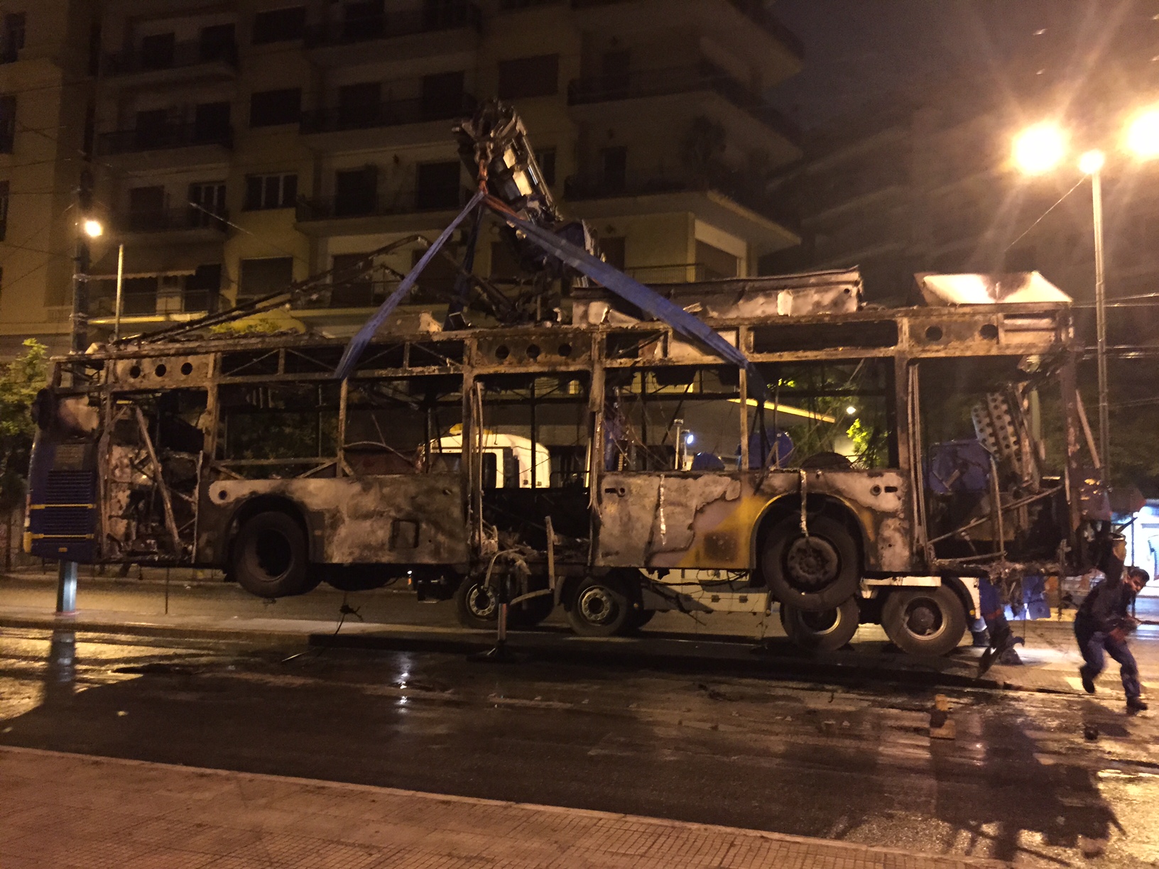 Επίθεση με βόμβες μολότοφ σε λεωφορείο στο ύψος του Πολυτεχνείου