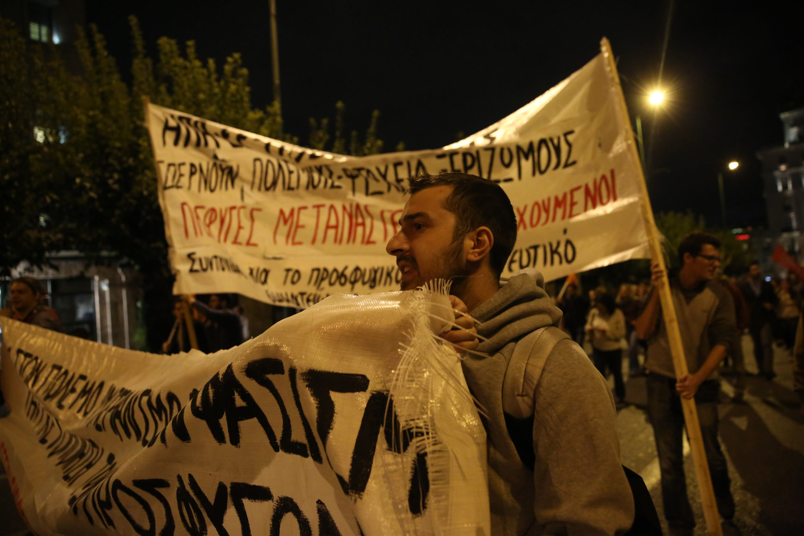 Με συνθήματα κατά του πολέμου και των βομβαρδισμών στην Συρία ολοκληρώθηκε η πορεία αλληλεγγύης στους πρόσφυγες.