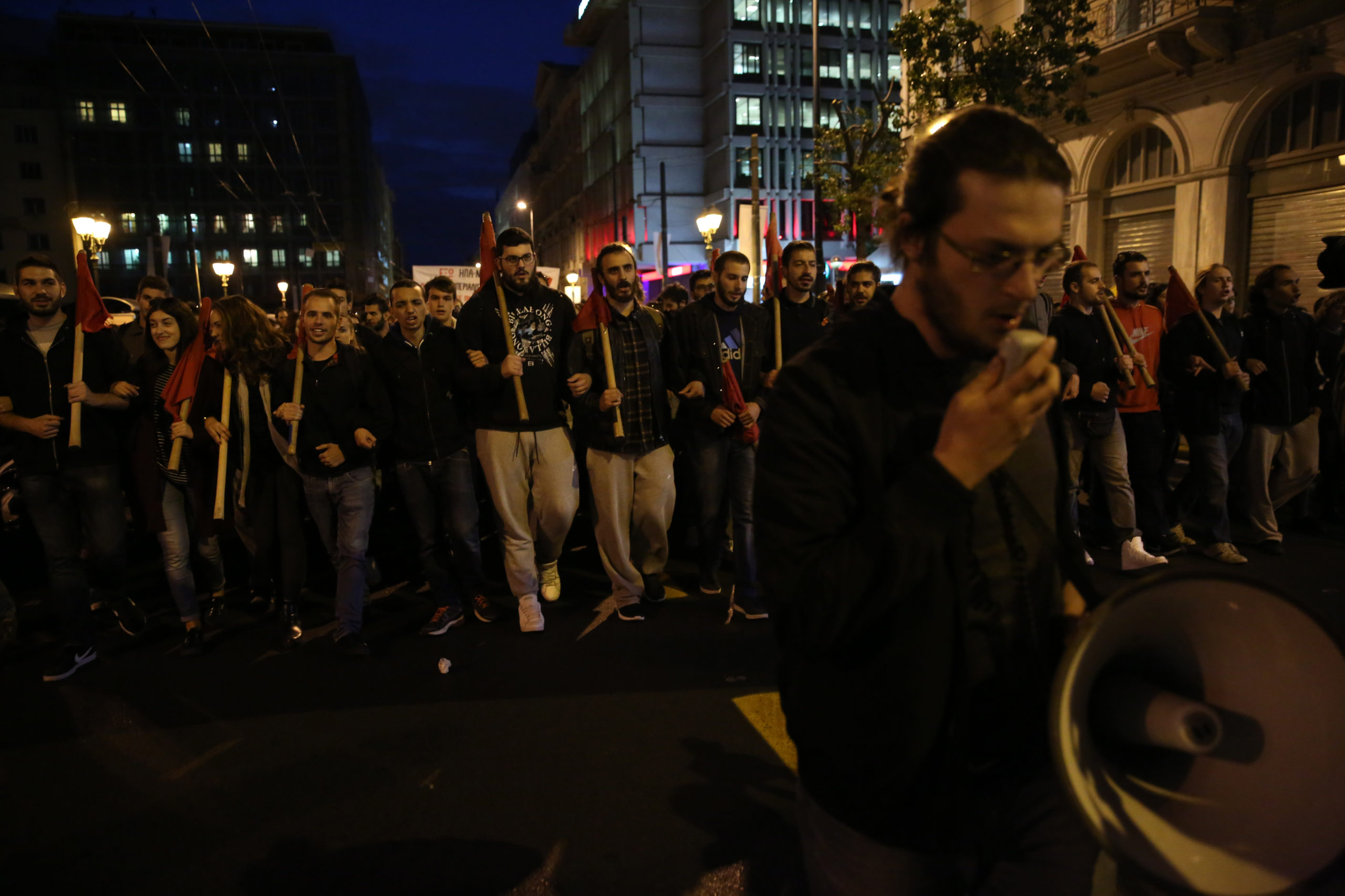 Στην πορεία παρών ήταν κι ο επικεφαλής της ΛΑΕ, Παναγιώτης Λαφαζάνης ο οποίος δήλωσε στο Αθηναϊκό – Μακεδονικό Πρακτορείο Ειδήσεων ότι ” Αγωνιζόμαστε ενάντια στον πόλεμο, τον ιμπεριαλισμό, τον φασισμό, την ξενοφοβία. Είναι οι μεγάλες πληγές που αυτήν την ώρα κατατρώγουν το σώμα των χωρών της περιοχής και κυρίως της Ευρώπης. Είναι η καινούργια μάστιγα η οποία πρέπει να καταπολεμηθεί από τους λαούς αν θέλουν να ανοίξουν δρόμους για το μέλλον μας”.