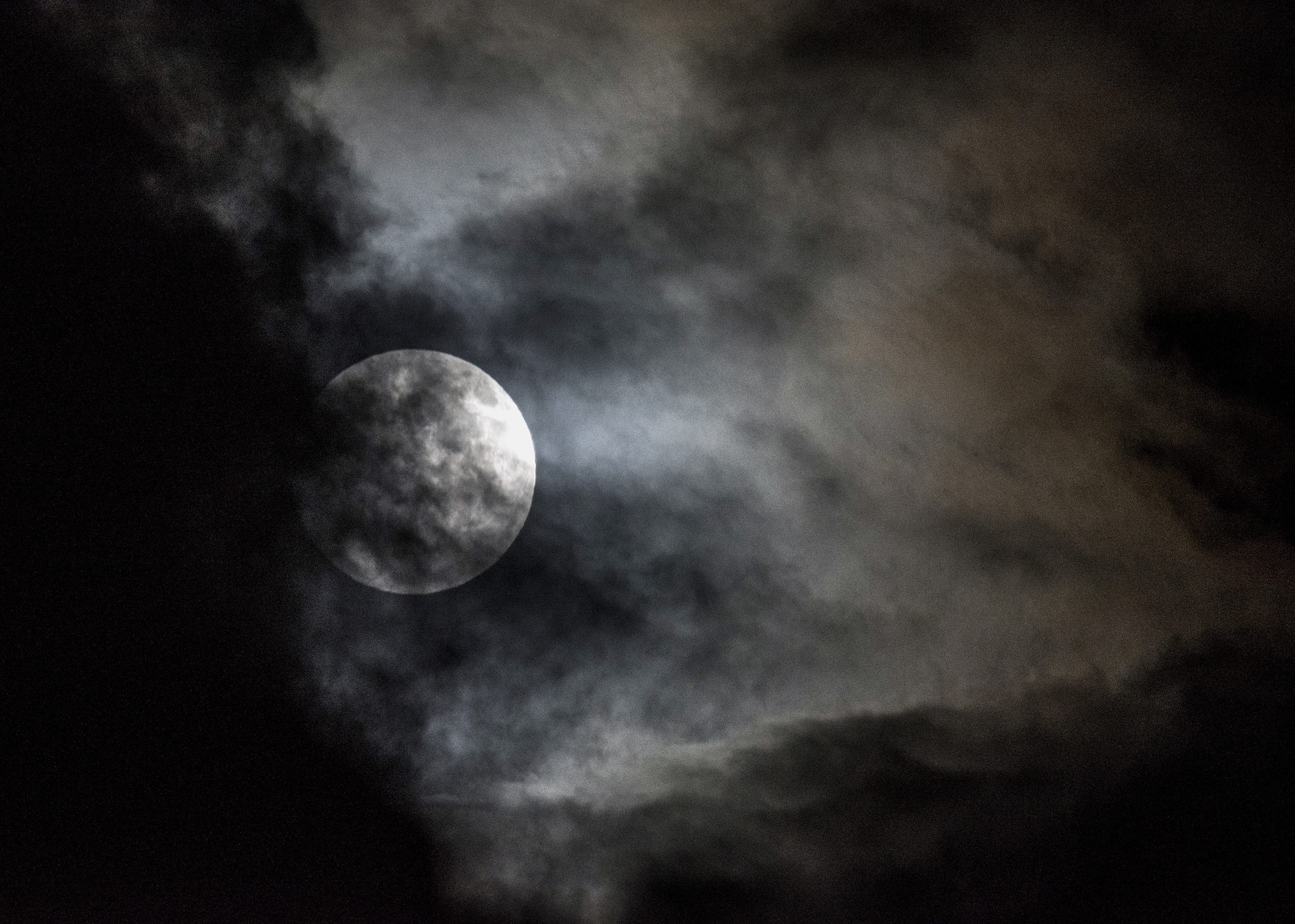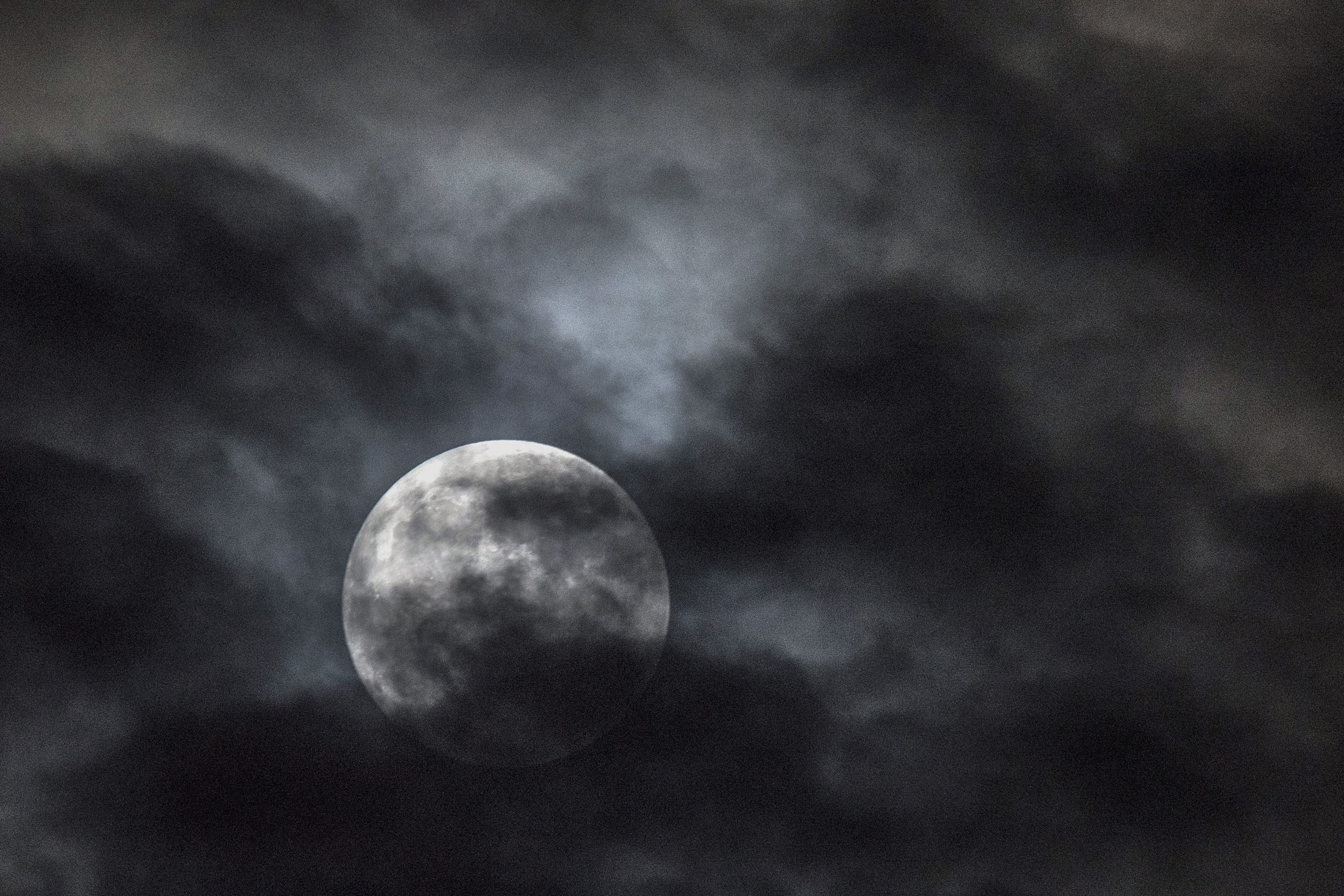 Μέσα από τα σύννεφα διακρίνεται στον ουρανό της Αθήνας η πανσέληνος.
