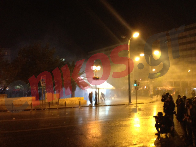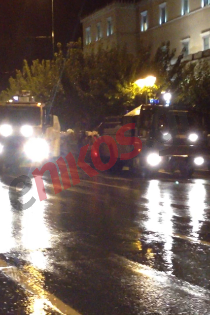 Φωτιές, ΜΑΤ και υδροφόρες συνθέτουν το σκηνικό γύρω από τη Βουλή.