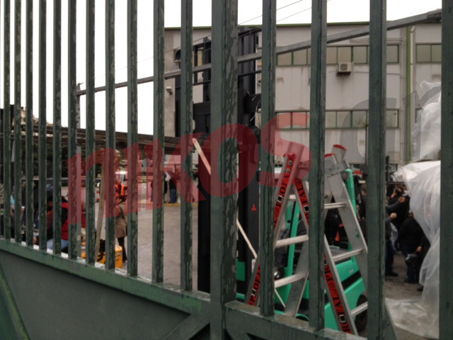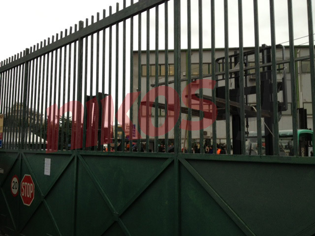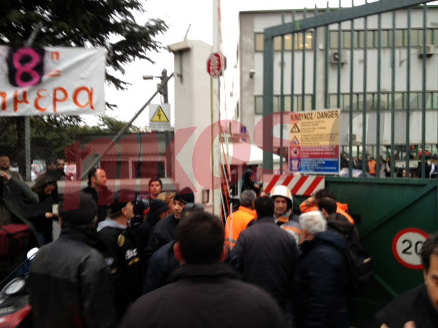 Στην πύλη έχει αναρτηθεί πανό με το σύνθημα: ” Απεργία διαρκείας παντού”