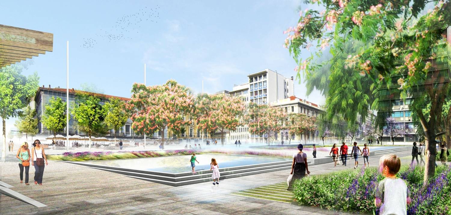 «Παιχνιδιάρικη» διάσταση θα έχουν τα υδάτινα στοιχεία, που θα τοποθετηθούν σε τέσσερα σημεία, στην οδό Κοραή, στην Πλατεία Δικαιοσύνης, στην Ομόνοια και έξω από το Εθνικό Αρχαιολογικό Μουσείο. Πρόκειται για οριζόντιες πλακοστρωμένες επιφάνειες, που θα γεμίζουν με νερά ανάλογα με την περίοδο (π.χ. το καλοκαίρι) ή σε μια γιορτή, δίνοντας τη δυνατότητα δροσισμού και παιχνιδιού σε μικρούς και μεγάλους. Ενδιαφέρον παρουσιάζουν επίσης οι αναπλάσεις πλατειών όπως της Ομονοίας, η οποία ανακτά το τετράγωνο του αρχικού νεοκλασικού σχεδιασμού της, και της πλατείας Δικαιοσύνης (περικλείεται από τις οδούς Αρσάκη, Πανεπιστημίου και Σανταρόζα), που αποκτά σκιά και ελεύθερο πεδίο για μια ευχάριστη ανάπαυλα στο κέντρο της πόλης.