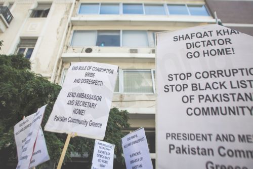 Οι Πακιστανοί πολίτες της Αθήνας διαμαρτύρονται ενάντια στα προβλήματα που έχουν δημιουργηθεί με την πρεσβεία της χώρας τους στη Ελλάδα.