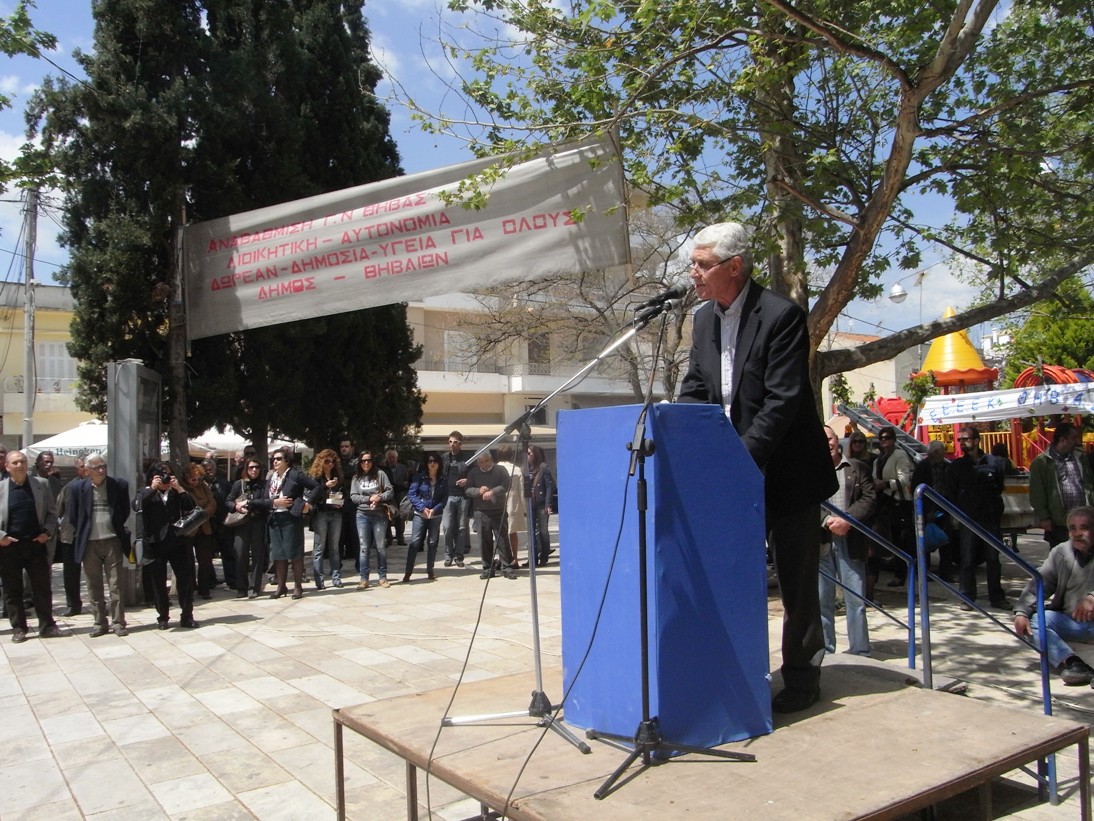 Καταδικάζοντας την απαράδεκτη κατάργηση της νομικής προσωπικότητας και αυτονομίας του Γενικού Νοσοκομείου Θηβών, που οδηγεί στην αδυναμία λήψης αποφάσεων από διοίκηση εντεταλμένη να εξυπηρετεί τις ανάγκες δημόσιας υγείας της πόλης και της περιοχής.
