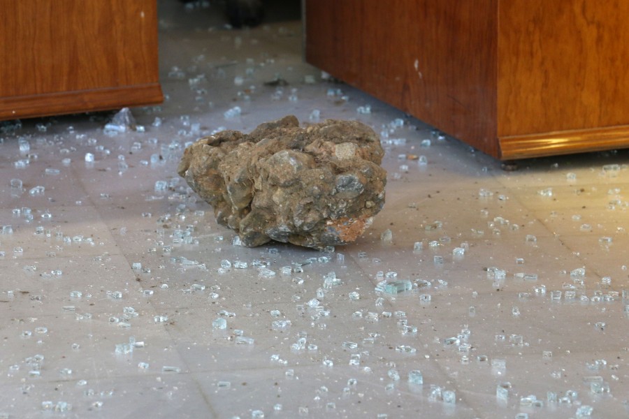 ΦΩΤΟ-Διέρρηξαν ζαχαροπλαστείο με «βράχο»