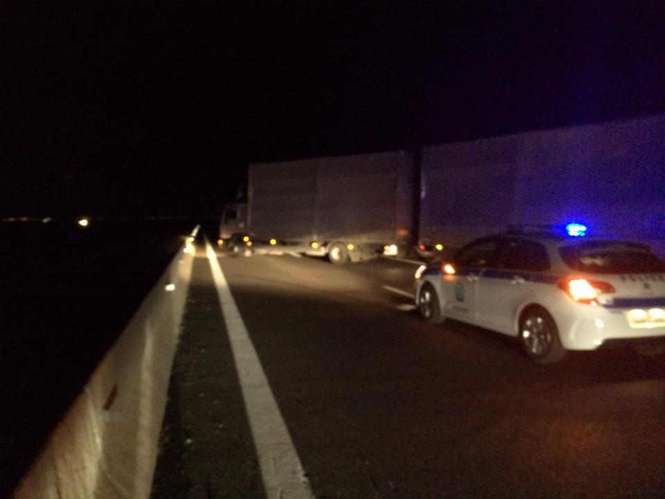 Λίγα λεπτά μετά τα μεσάνυχτα, μία νταλίκα που κινούνταν στην Εγνατία Οδό δίπλωσε και διεκόπη η κυκλοφορία για 20 λεπτά.